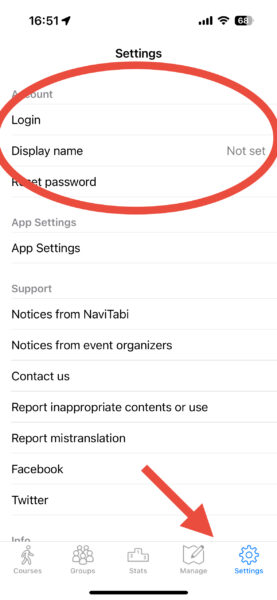 → iOS: Tap “Settings” at the bottom right and log in from the settings menu.